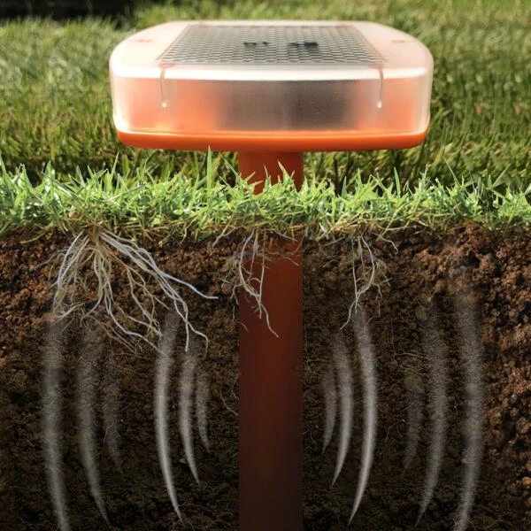 De solar Mega-Sonic mollenverjager is aan de bovenzijde voorzien van een groot zonnepaneel. De ingebouwde oplaadbare batterijen laden hierdoor op in de zon. Zo kan de verjager enerzijds krachtige trilling produceren, anderzijds sonische pulsen van een lage frequentie in intervallen van 30 seconden. Op die manier wordt de natuurlijk omgeving van de mol verstoord en worden ze verplicht om een nieuw leefgebied op te zoeken.