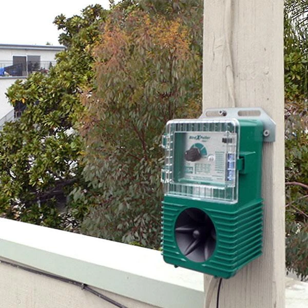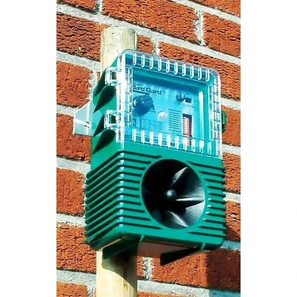 Deze professionele vogelverjager met een bereik tot 6000 mΒ² maakt 8 verschillende geluiden van roofvogels en noodkreten van de te verjagen kraaien. Instelbaar in volume, lengte, soort vogel, tijdklok, willekeurig tijdstip (dag, nacht, 24 uur).